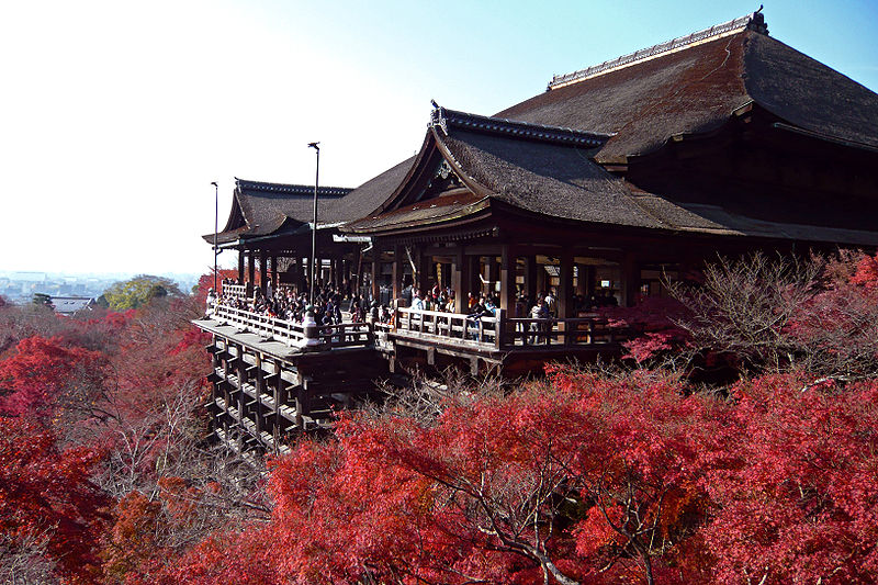 建物の前半が山の斜面につきだす、高さ13mの舞台を持つ。
