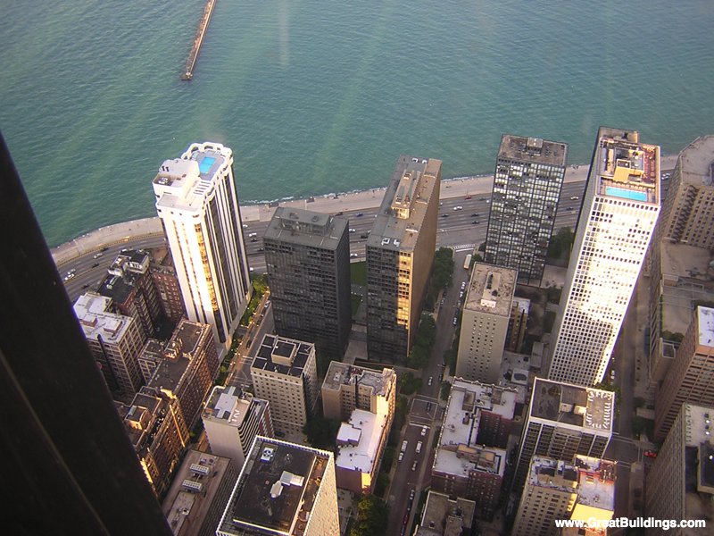 26階建ての2棟のツインビル 建物の4面とも床までの大きなガラスで覆われている。